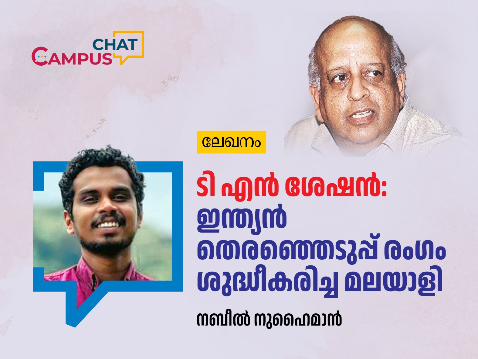 ടി എൻ ശേഷൻ എന്നത് വലിയ ഒരു ഓർമപ്പെടുത്തലിന്റെ പേരാണ്. ആരുടെ മുമ്പിലും തലകുനിക്കാത്ത നിശ്ചയദാർഢ്യമുണ്ടെങ്കിൽ ഏത് പദവിക്കും കസേരക്കും ചെറുതല്ലാത്ത വിലയുണ്ടെന്ന ഓർമപ്പെടുത്തലിന്റെ പേര്. ശേഷൻ ആ സ്ഥാനമേറ്റെടുക്കുന്നത് വരെ ഉറങ്ങിക്കിടന്ന ഒരു കസേര മാത്രമായിരുന്ന ആ പദവിയിൽ ഭരണഘടന വഴികാട്ടിയാക്കി അതിന്റെ ഉൾക്കഴ്ചയിലൂടെ സഞ്ചാരിച്ചപ്പോൾ അത് എത്ര വലിയ മഹത്തരമായ പദവിയാണെന്ന്, ശേഷൻ എന്ന പാലക്കാട്ടുകാരൻ നമുക്ക് കാണിച്ചു തന്നു. അദ്ദേഹത്തിന്റെ ജീവിതം വരും തലമുറകൾക്ക് ഒരു തുറന്ന പാഠപുസ്തകമാണ്. 1997 ൽ ശിവസേനയുടെ സ്ഥാനാർഥിയായി പ്രസിഡന്റ് പദവിയിലേക്ക് മത്സരിച്ചെങ്കിലും കെ ആർ നാരായണനോട് പരാജയപ്പെടുകയാണുണ്ടായത്. ഉദ്യോഗസ്ഥ ജീവിതത്തിലെ മികച്ച പ്രതിച്ചായ രാഷ്ട്രീയത്തിലേക്ക് കൊണ്ടുവരാനുള്ള ശ്രമം പരാജയപ്പെടുകയാനുണ്ടായത്. രാഷ്ട്രീയ പാർട്ടികളുടെ ഇംഗിതത്തിനനുസരിച്ച് പ്രവർത്തിച്ചിരുന്ന ഒരു സ്ഥാപനത്തെ കൃത്യമായ നിയമങ്ങളുണ്ടാക്കി.